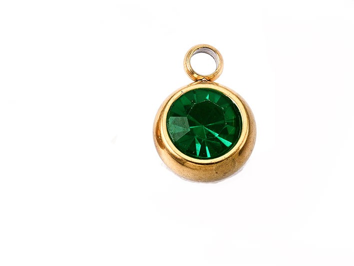 Breloque ronde 8x6mm-Acier inoxydable doré-strass émeraude x1