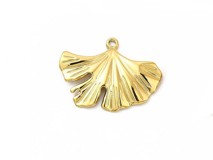 Pendentif fleur de ginkgo-22x30mm Acier inox 304 doré 18Kx1