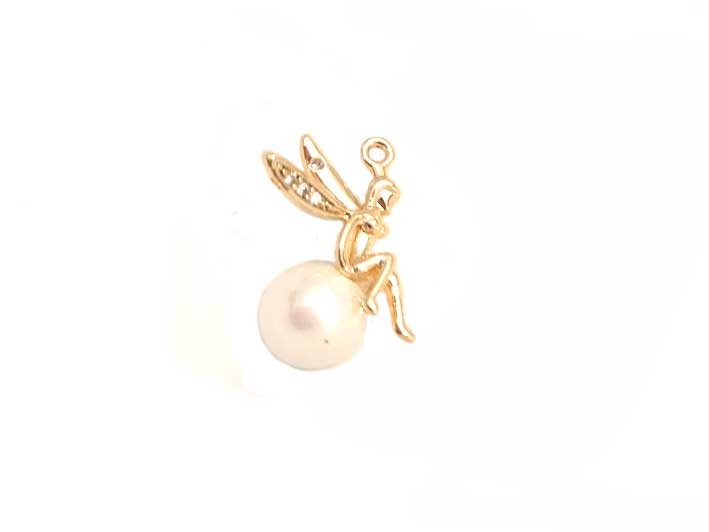 Pendentif fée et zircons 20x16mm-perle blanche-Doré or 18carats x1
