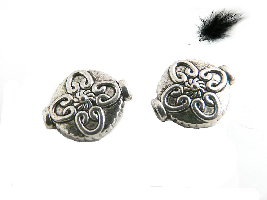 Perle plate décorée 12.5mm Argenté vieilli X 1