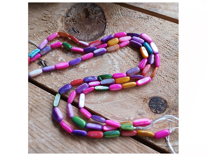 Perles rectangulaires 14x5mm en nacre couleurs mélangées x 38cm