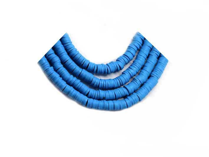 Rondelle Heishi 6x1mm pâte polymère Bleu turquoise x46cm