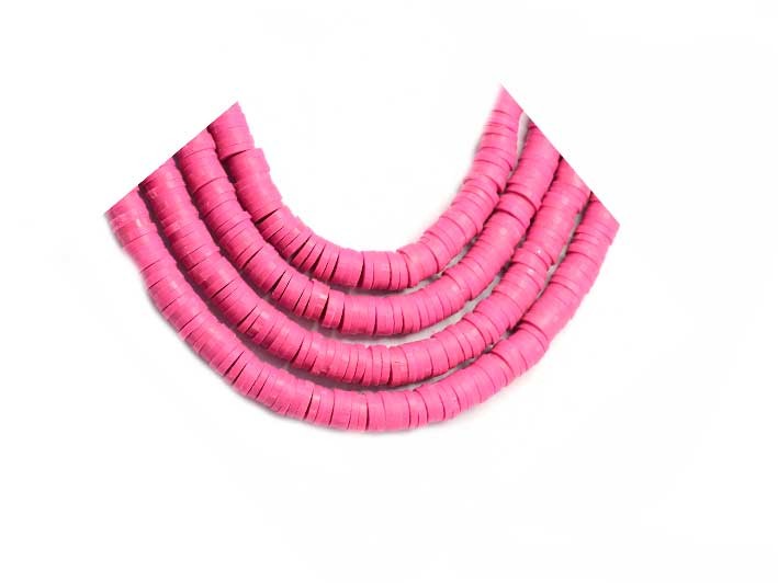 Rondelle Heishi 6x1mm pâte polymère Fuchsia x46cm