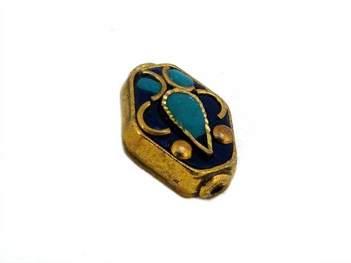 Losange 20x15mm indonésie Marine et turquoise X1