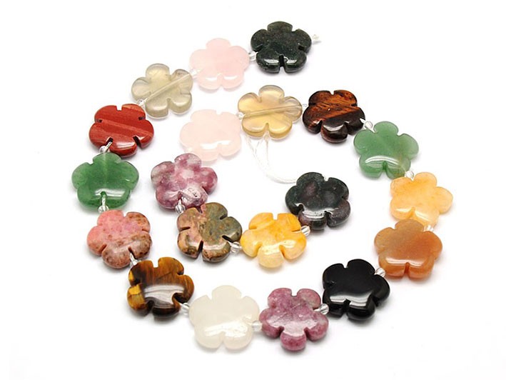 - Brin de 27 perles fleurs diverses variétés en pierre naturelle