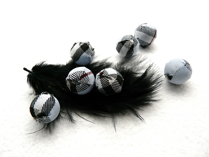 Perle en tissu 14mm écossais ciel blanc noir X1