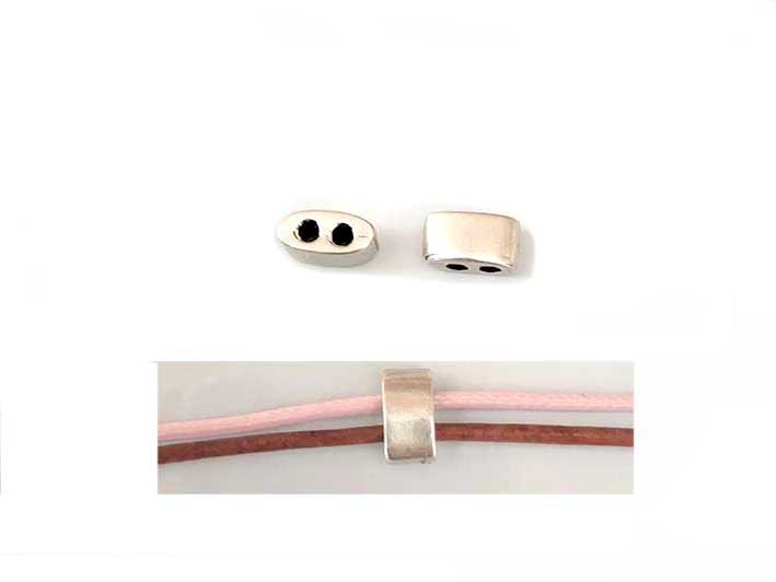 Passant 2 trous 10x5mm pour cuir 2mm argenté X1