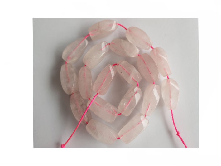 Perle rectangulaire twistée et facettée en quartz rose naturel