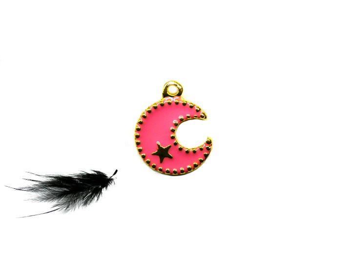 Charm lune 13mm rose et or X1