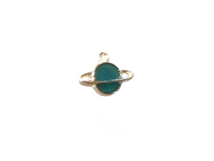 Breloque planète en métal et émail résine verte