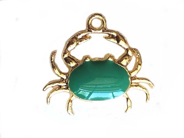Breloque crabe 20x18mm-Doré-Vert x1