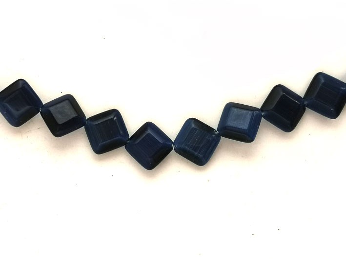 - Perles carrées facettées en verre œil de chat avec un perçage en diagonale (losange)