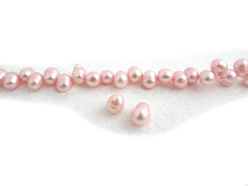 Perles d'eau douce ovales 8-10mm rose clair X4