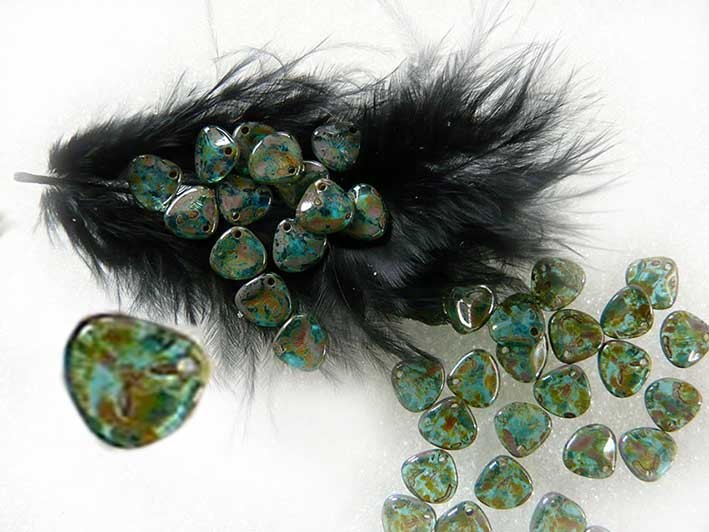 Pétale en verre de Bohême 7x 8mm Aquamarine dark travertin X 20
