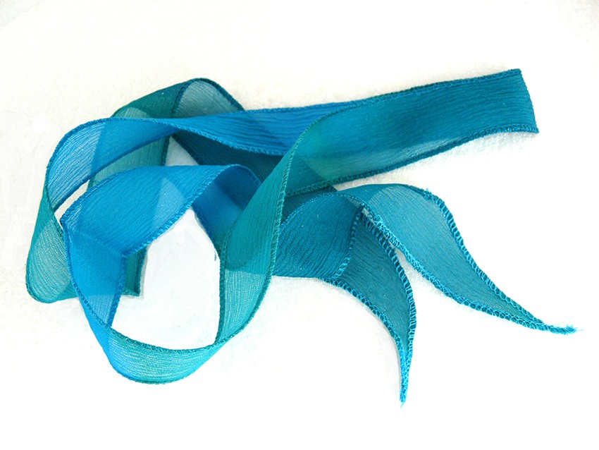 Ruban pure soie teint à la main Bleu turquoise et Vert environ 90cm