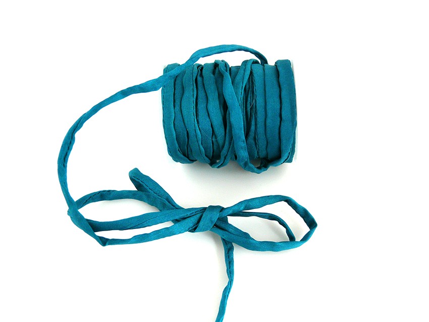 CORDON en SOIE HABOTAI Roulottée 5mm EMERAUDE x 0,50 M