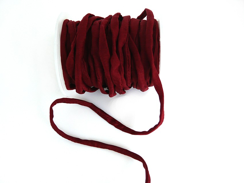 CORDON en SOIE HABOTAI Roulottée 5mm ROUGE BORDEAUX PROFOND x 0,50 M