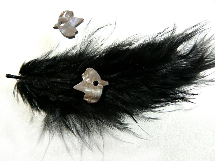 Oiseau Nacre Gris-noir 13x14mm par 2
