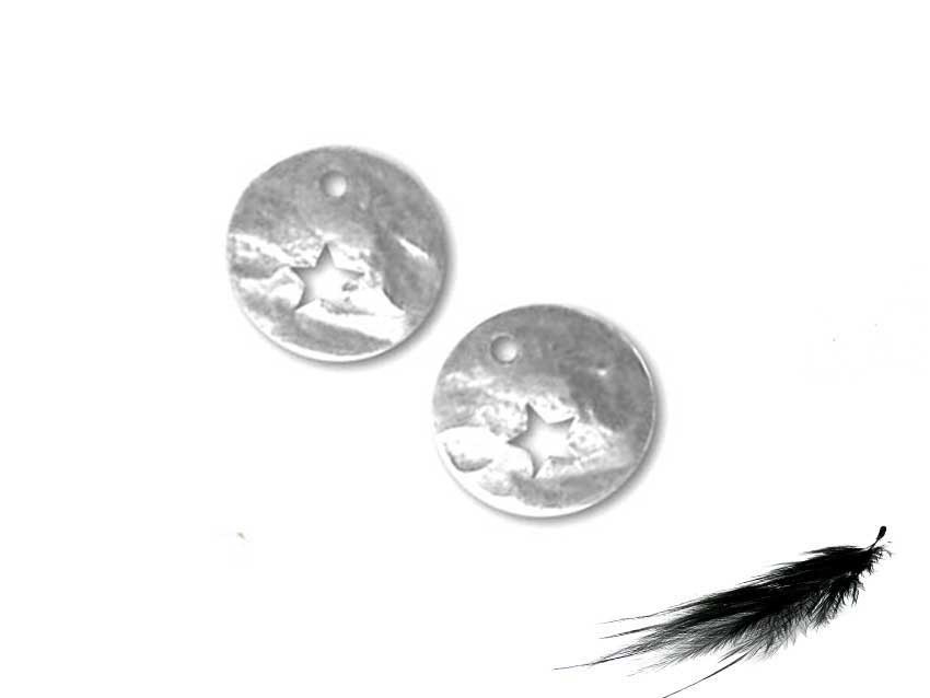 Sequin froissé étoilé 10mm argenté vieilli x1