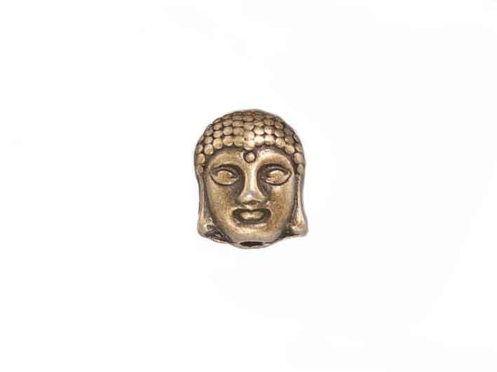 Tête de Bouddha percée verticalement en métal couleur bronze antique