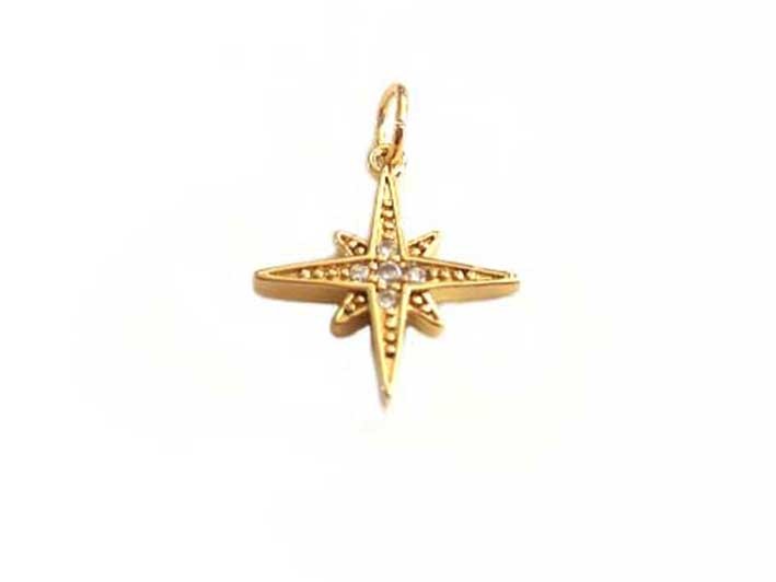 Breloque étoile du nord -zircons AAA-16x14mm-plaqué or x1