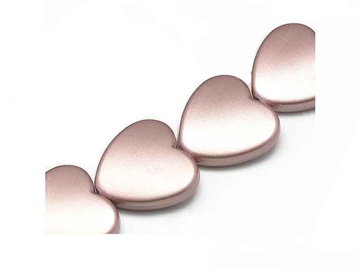 Perle synthétique forme cœur rose aspect caoutchouté très satiné doux