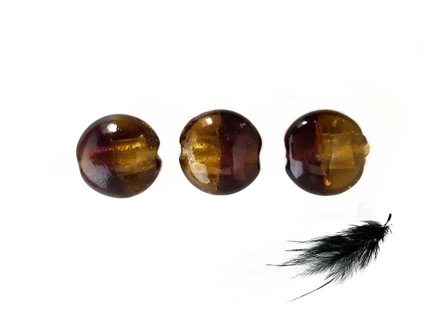 - Perle lentille bombée de 20mm de diamètre, contenant des inclusions de feuille d'argent