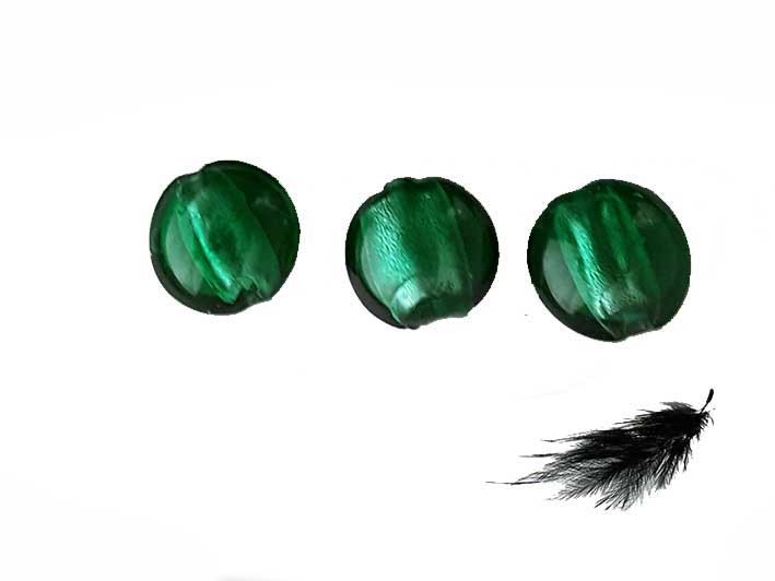 Lentille bombée feuille d'argent 15mm Vert X 1