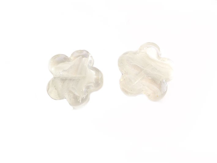Fleur en verre blanc nuagé base translucide