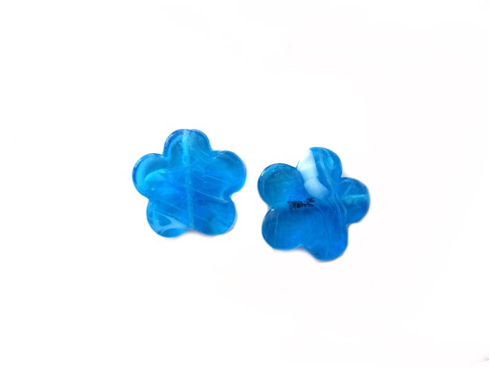 Fleur perle en verre 24mm-Bleu X 1