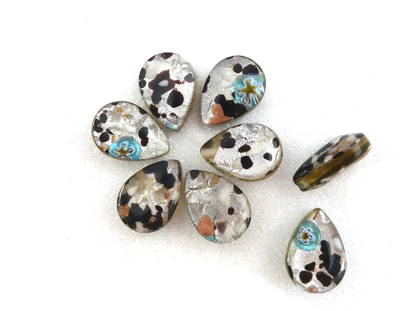 - 5 perles en verre millefiori-Insertion d'une feuille d'argent à l'intérieur.