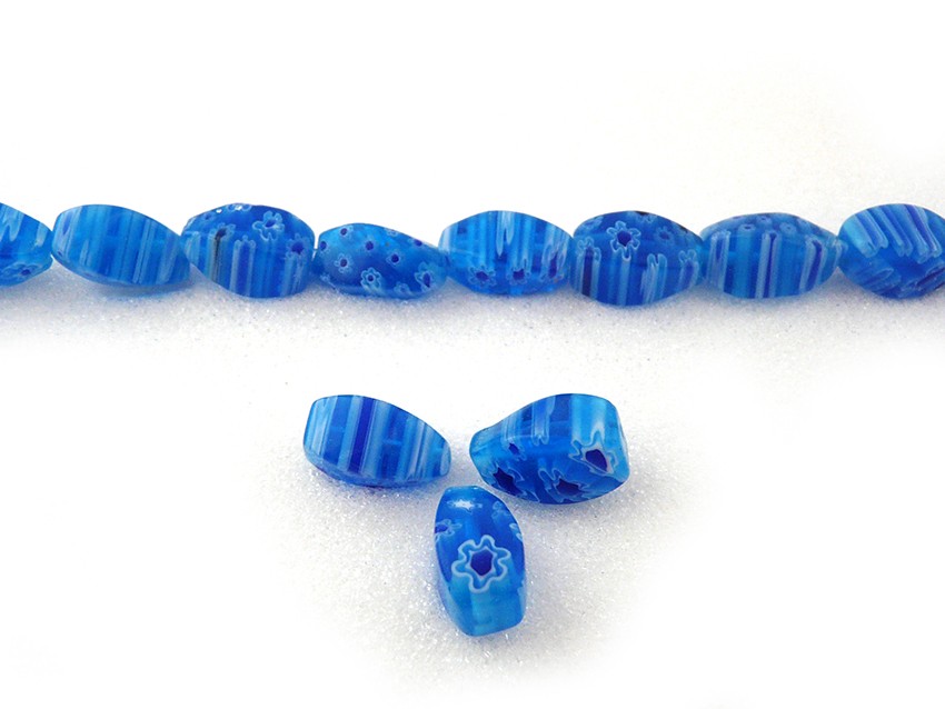 Perle en verre MILLEFIORI 15 x 8 mm BLEU x1